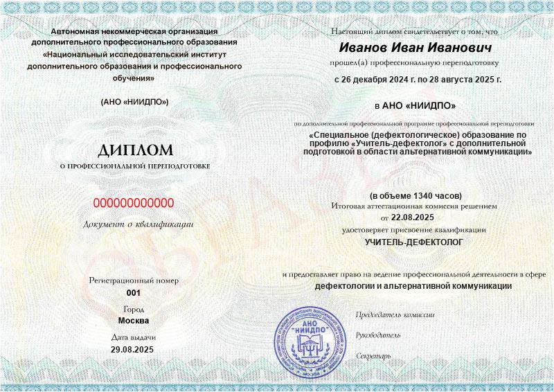 Специальное (дефектологическое) образование по профилю «Учитель-дефектолог» с дополнительной подготовкой в области альтернативной коммуникации (1340ч)