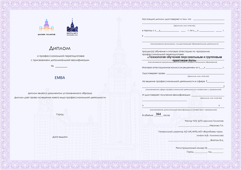 Обзор программы профессиональной переподготовки «Технология обучения персональным и групповым практикам йоги» с присвоением квалификации «Инструктор по йоге»