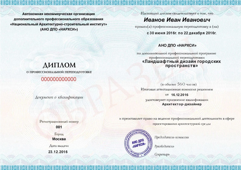 Учебный план программы профессиональной переподготовки «Ландшафтный дизайн городских пространств» с присвоением квалификации «Архитектор-дизайнер»