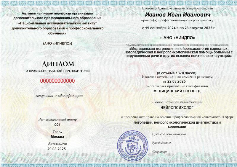 - 2 квалификации: Медицинский логопед + Нейропсихолог