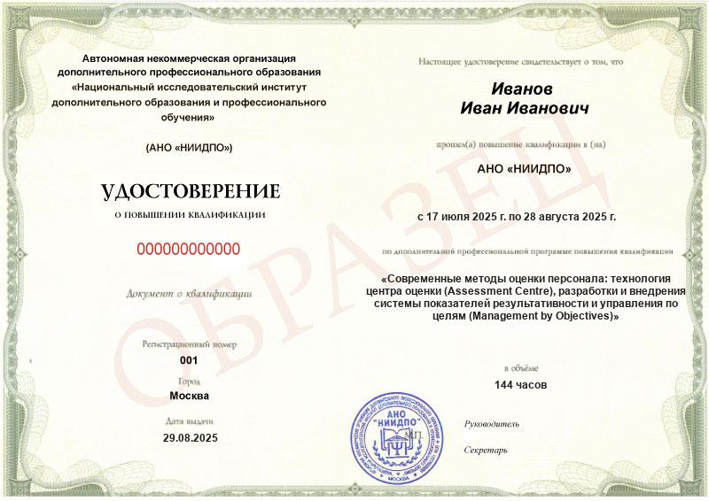 Современные методы оценки персонала: технология центра оценки (Assessment Centre), разработки и внедрения системы показателей результативности и управления по целям (Management by Objectives) (144ч)