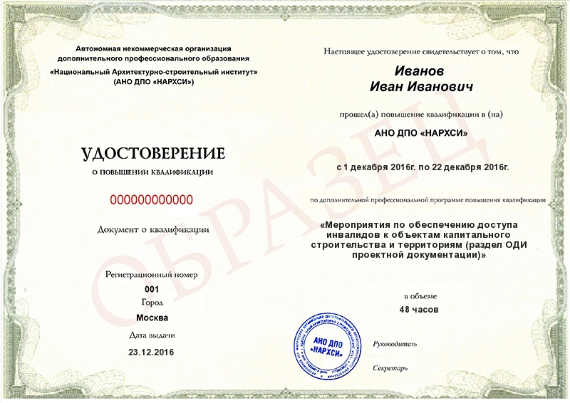 Обзор программы повышения квалификации «Мероприятия по обеспечению доступа инвалидов к объектам капитального строительства и территориям (раздел ОДИ проектной документации)»