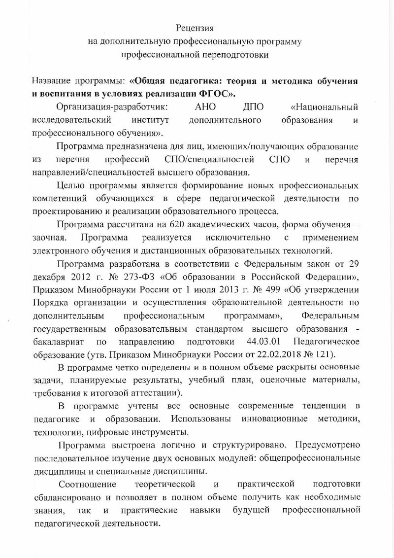 Обзор программы профессиональной переподготовки «Общая педагогика: теория и методика обучения и воспитания в условиях реализации ФГОС» с присвоением квалификации «Педагог»