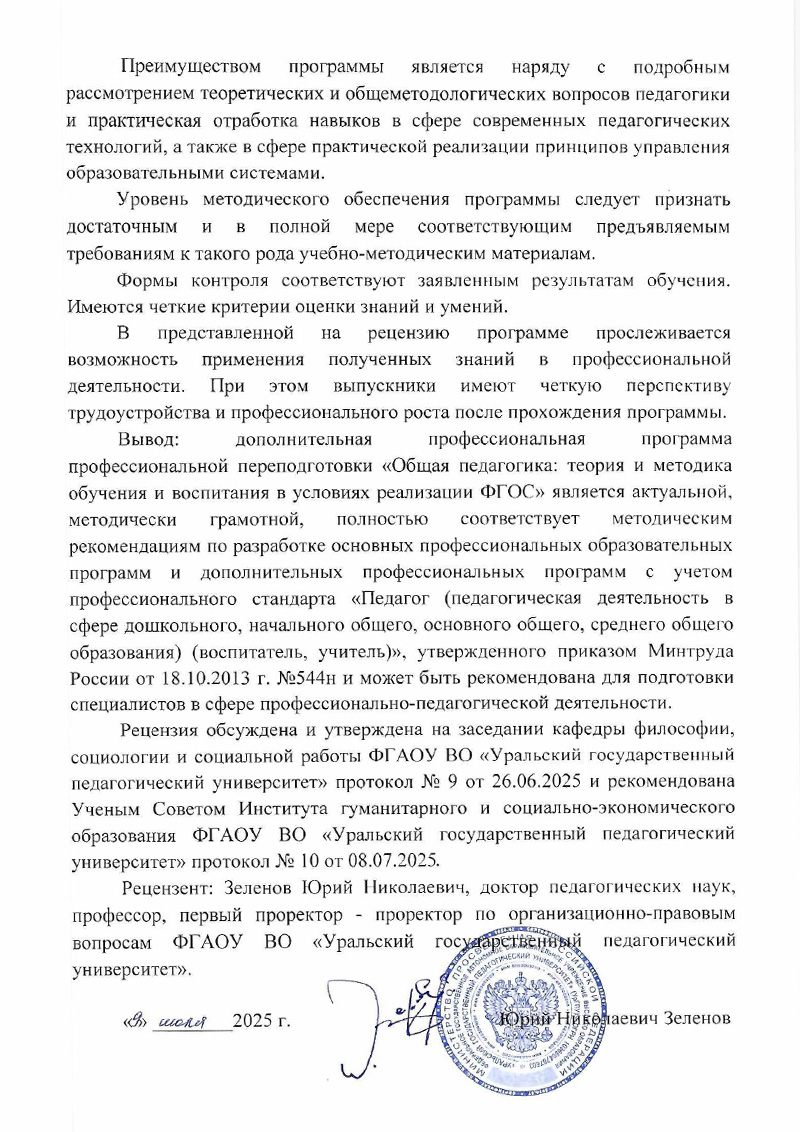 Читайте рецензию доктора педагогических наук, профессора, первого проректора – проректора по организационно-правовым вопросам ФГАОУ ВО «Уральского государственного педагогического университета» Зеленова Ю.Н.