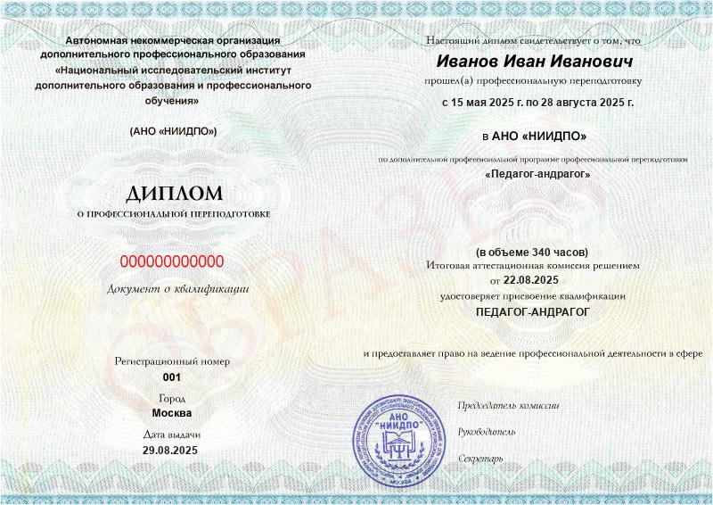 Обзор программы профессиональной переподготовки «Педагог-андрагог» с присвоением квалификации «Педагог-андрагог»