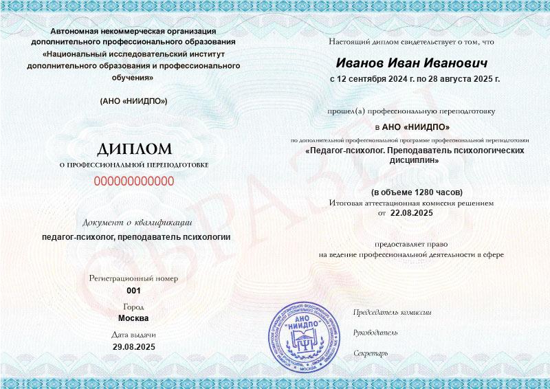 Педагог-психолог. Преподаватель психологических дисциплин (1280ч)