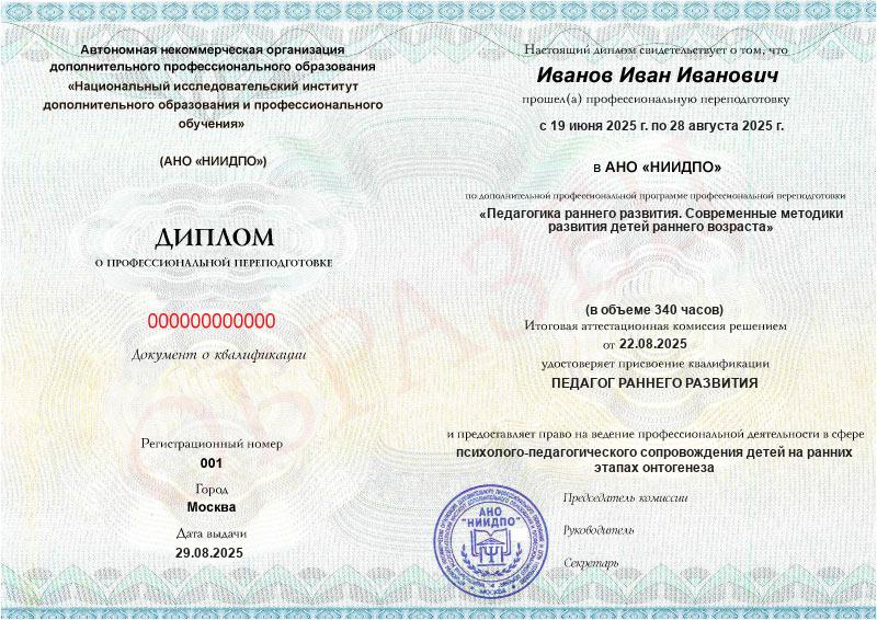 Студент, желающий поступить в АНО «НИИДПО», должен предоставить справку из образовательной организации. Независимо от срока окончания обучения по программе дополнительного образования, диплом о профпереподготовке выдаётся только после предъявления документа о получении среднего профессионального или высшего образования.
