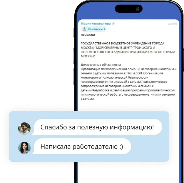 Добавим в закрытый канал с вакансиями для психологов, научим проходить собеседования в крупные компании и развивать личный бренд. Каждый месяц — групповые карьерные консультации с экспертом: ответим на ваши вопросы, поделимся лайфхаками по планированию карьеры.