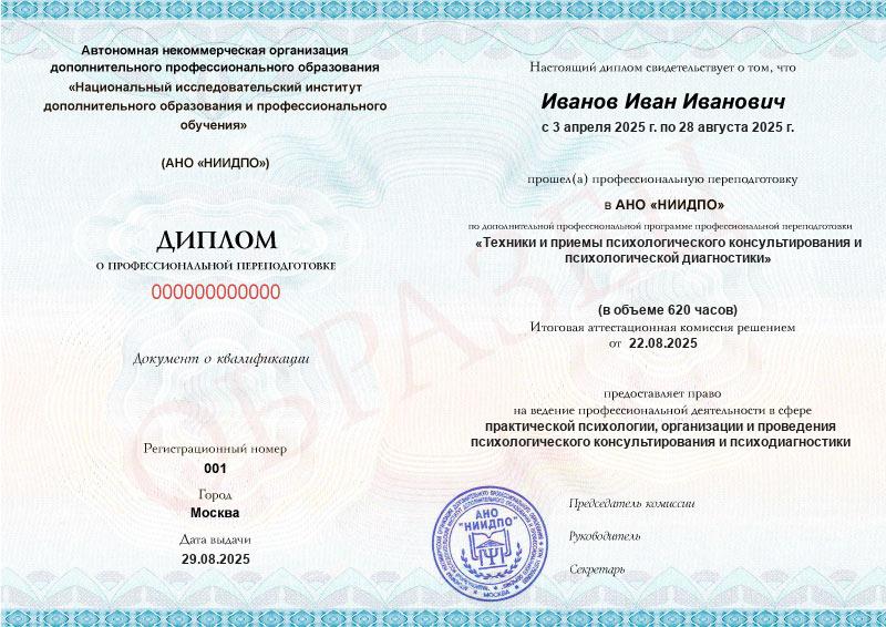 Студент, желающий поступить в АНО «НИИДПО», должен предоставить справку из образовательной организации. Независимо от срока окончания обучения по программе дополнительного образования, диплом о профпереподготовке выдаётся только после предъявления документа о получении среднего профессионального или высшего образования.