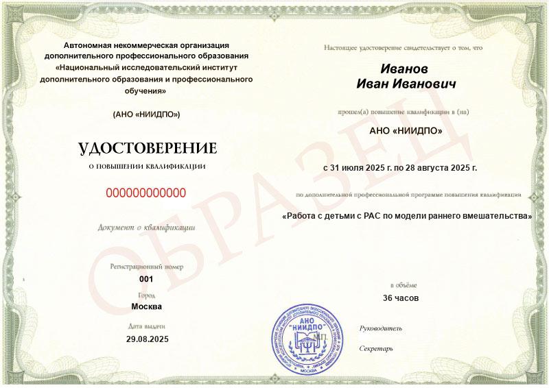 Да, документы оформляются на бланках с защитой от подделок, заполняются на русском языке, в них ставится печать АНО «НИИДПО».