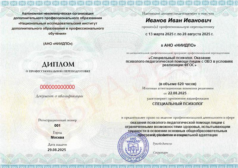 Студент, желающий поступить в АНО «НИИДПО», должен предоставить справку из образовательной организации. Независимо от срока окончания обучения по программе дополнительного образования, диплом о профпереподготовке выдаётся только после предъявления документа о получении среднего профессионального или высшего образования.