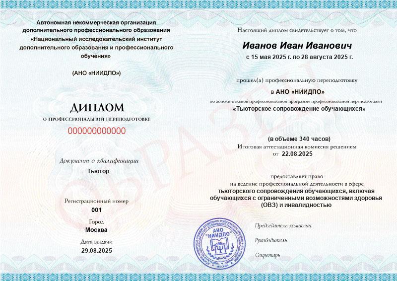 - Квалификация: Тьютор