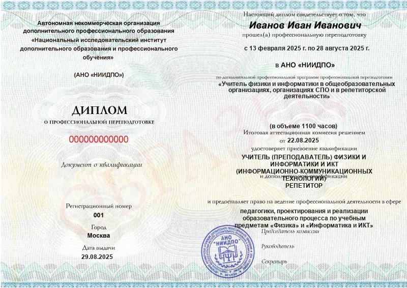 Обзор программы профессиональной переподготовки «Учитель физики и информатики в общеобразовательных организациях, организациях СПО и в репетиторской деятельности» с присвоением квалификации «Учитель (преподаватель) физики и информатики и икт (информационно-коммуникационных технологий)» с дополнительной квалификацией «Репетитор»
