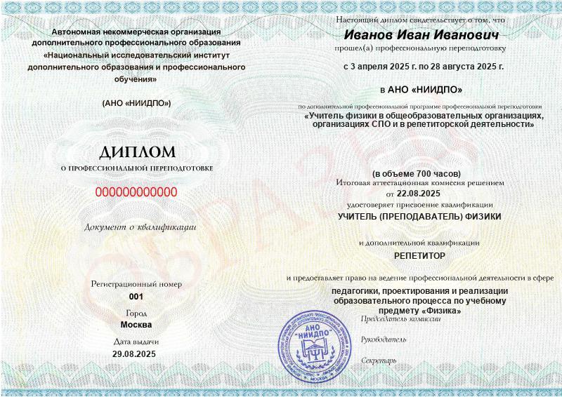Да, документы оформляются на бланках с защитой от подделок, заполняются на русском языке, в них ставится печать АНО «НИИДПО».