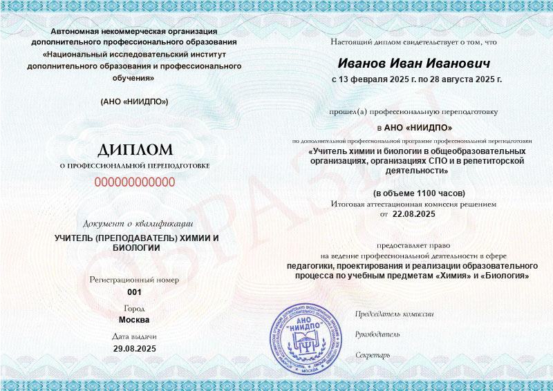 Учитель химии и биологии в общеобразовательных организациях, организациях СПО и в репетиторской деятельности (1100ч)