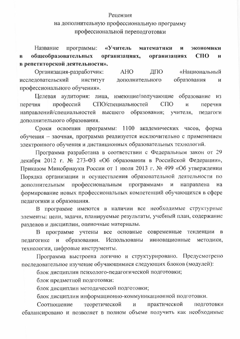 Обзор программы профессиональной переподготовки «Учитель математики и экономики в общеобразовательных организациях, организациях СПО и в репетиторской деятельности» с присвоением квалификации «Учитель (преподаватель) математики и экономики» с дополнительной квалификацией «Репетитор»