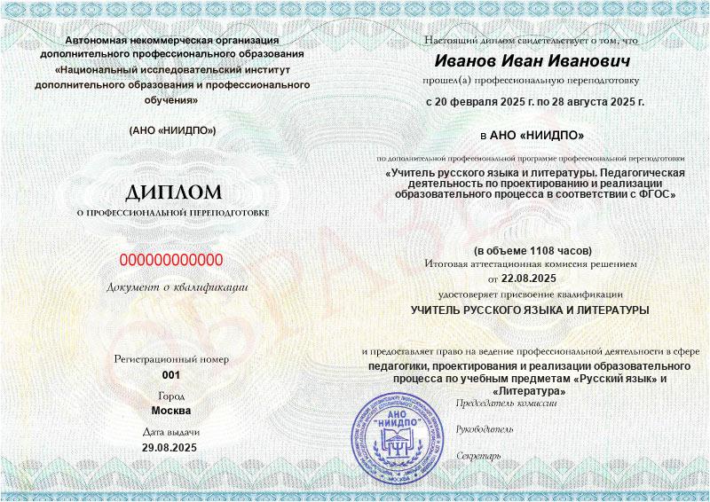 Диплом АНО «НИИДПО» принимают и работодатели, и аттестационная комиссия.
